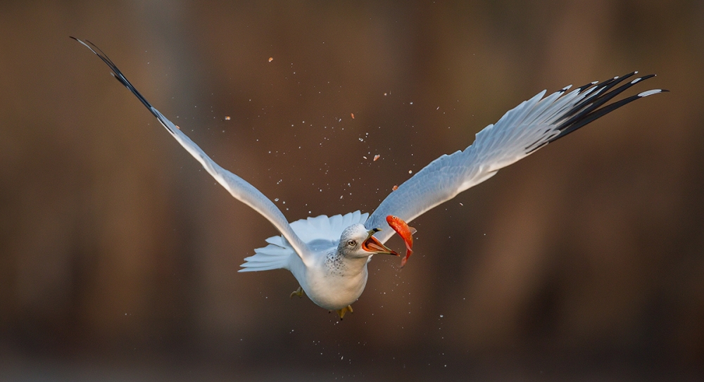 I prefer action imagery that contains interesting, unusual and/or extraordinary animal behavior. Crisp, sharp images with great clarity are a must. A smooth, seamless background is also a necessity, especially one that enhances the subject by incorporating soft, colorful components in the composition. This way the background not only complements and balances the movement of the subject, but it remains a distant, out-of-focus and non-distracting supporting element in every image. And of course, I would be remiss if I did not mention that the first and most important requirement is shooting in exceptional light. If the light is poor, my camera does not even come out of my bag.