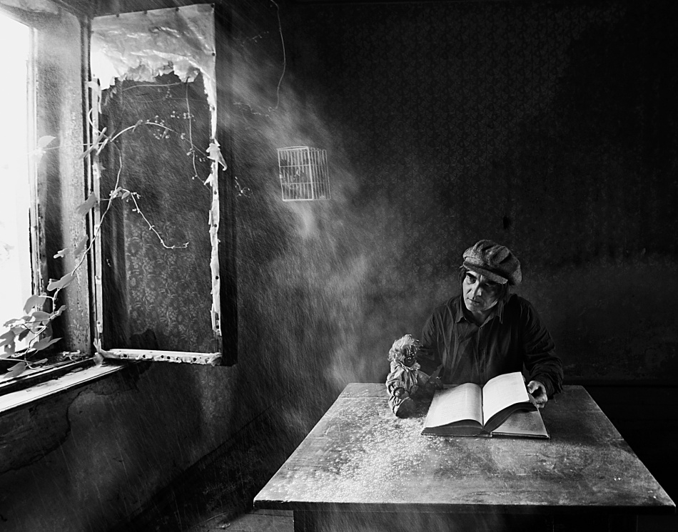 Most of the time, I work alone and I am the photographer and the model at the same time. That's why I always use a tripod. It can be difficult to find "models“ for my picture stories. People don't like posing, they don't have suitable clothes, they don't have time or they are just not in the mood. From time to time I manage to arrange some shooting sessions with my friends. Lucky Bobby is one of my friends who likes helping me and sometimes gives me great ideas, too. All my photos were shot with daylight and I always use a wide angle lens which is my favourite. Most of the photos were taken in abandoned houses because I associate that kind of place with the characters from the past. I am not into modern stuff. Furthermore, I am not interested in stereotypes either. Everything out of the ordinary, surreal and with a bit of dark atmosphere intrigues me. I am inspired by David Lynch, Edgar Alan Poe, Franceska Woodman, Jan Saudek, Ed Van der Elsken, Henry Cartier-Bresson, Robert Frank and Andy Warhol.