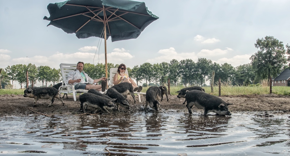 About a year ago, I started something new for me: pictures of farmers with their family in the barn or in a mud pool. I want to picture them in way as if it looks like that they are always relaxing (i.e. reading) among their animals.