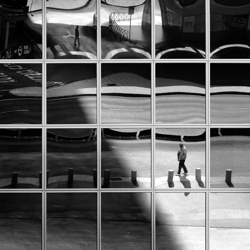 So, in my photography approach and most of the times, basically I try to connect shapes, patterns, light and tones, sometimes including people in the frame and sometimes not, but when I join people to the composition I always try that they work as another linking element in a geometric frame, thinking not about the person itself but the vertical line someone represents in a geometric composition. This linking element can be a static element or a dynamic element but always working to link different parts of the frame.