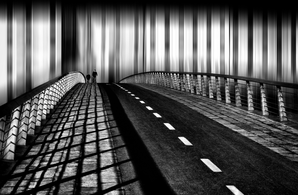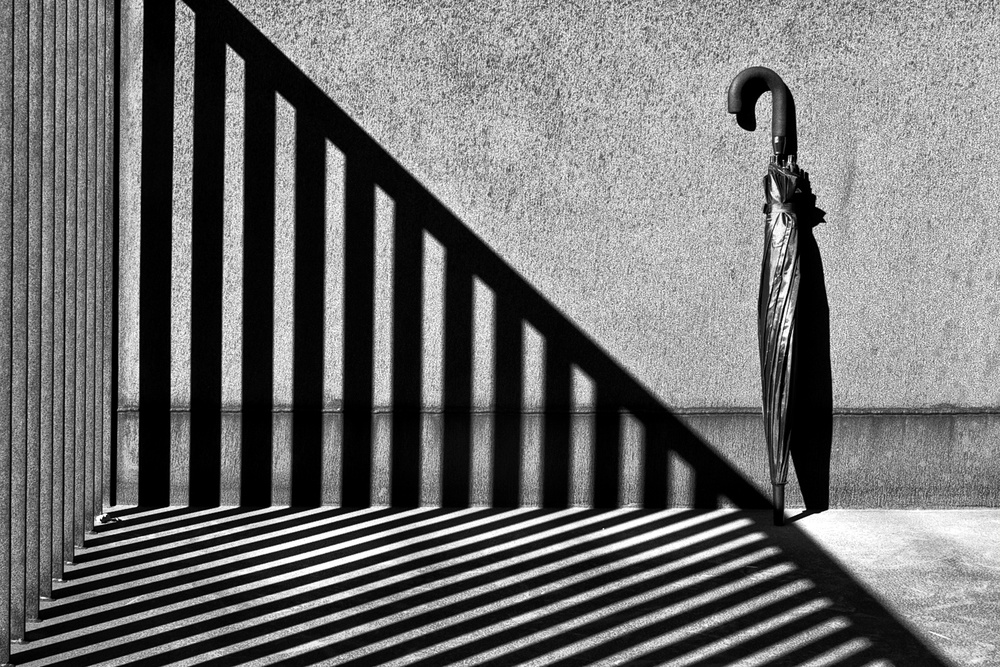 Shadow shapes seen as polygons or lines have visual weight not only because of the shape itself but because of the tone. Black as well as white shapes are heavier than grey shapes (the more neutral grey they are the less they weight); round shapes (wheels shapes for example) are more instable than polygonal shapes but less aggressive, but spheres, on the other hand, are more dynamic than those polygon shapes. Line shadows make connections with polygon shapes (real or other polygon shadows) in the frame and we may want or not want those connections in the frame. Frequently also, shadows are a subdued element of the composition, in street shooting for example the shadow of a person may have great use for a mysterious mood for leaving questions to the viewer, but the way those shadows are represented (short shadow, long shadow, diagonal, vertical or horizontal shadow) and understanding how those different shadow positions influence the mood of the picture is very important to achieve a successful image.