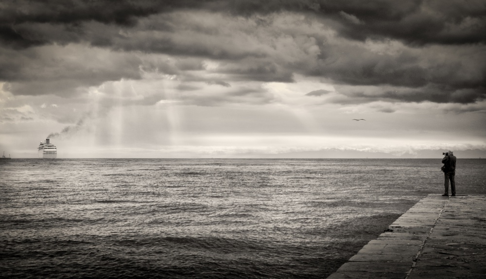 Funny how it works in the opposite way for the sky: landscape BW photographers make great use of this knowledge and use ND filters to make powerful clean visual guide lines with clouds, or just for to soften the large volume of stormy weather, and to force our attention to the landscape shapes and patterns on the ground. Clouds, themselves, in their “natural” form are shapes and non-regular volumes and if those shapes and volumes are too powerful (big drama powerful cloudy/stormy skies) they could completely jeopardize the ground composition with a very powerful cloudy sky. So, in this context, in a geometric/design/formal narrative for BW, cleaning the sky is just making those lines (most of the time in a diagonal way) in the sky and try to take advantage of them and use them to link the ground elements (in a sense and context of scale, distance, perspective, for visual dynamics, etc).
