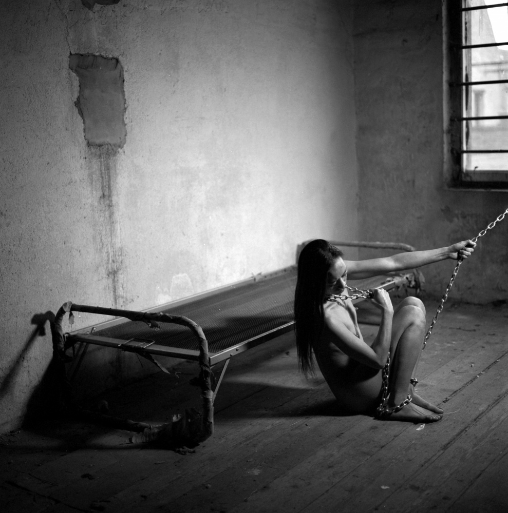 Or to give the photo a fully worked out background idea. With the end result I wanted to give the viewer only a framework, in which he or she may think of the story himself. My idea became a girl with a chain in her hand.