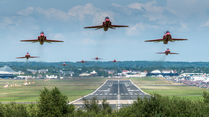At least in the northern hemisphere, airshow season will soon be upon us again. But Airshows are not the easiest subjects and environments to work with, particularly if the aim is to produce something more than a standard technical shot. For a start, your location relative to the display is important and the key is to get there early, get to the crowd line and stake out your space with a folding chair. The centre of the runway is a good location. Most display routines will perform to a crowd in an official grandstand and that means that they will be coming straight towards you at right angles to the runway, so look for those grandstand locations. The Red Arrows ‘break’ is a good example.