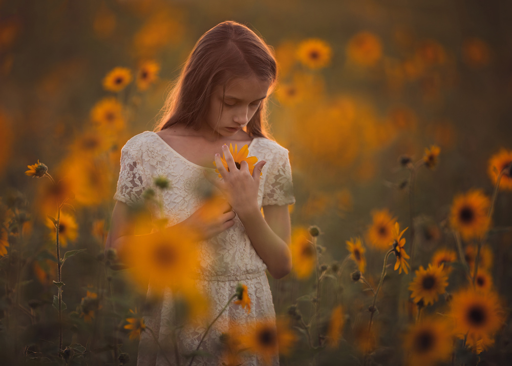 Lastly, portraits can be the hardest category of photography in which to convey story. This image is a classic ‘girl back to nature scene’ where the story elements include the restricted colour palette, the simplicity of the girl’s dress and the concentration on the flowers.