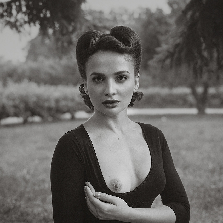 To keep the balance, we will mention the third photograph – ‘Royal Tea’. A portrait of a woman in a black tight-fitting dress with retro hairdo in the style of the 40s. Her intense gaze invites the viewer to puzzle out the story… and follow her.
