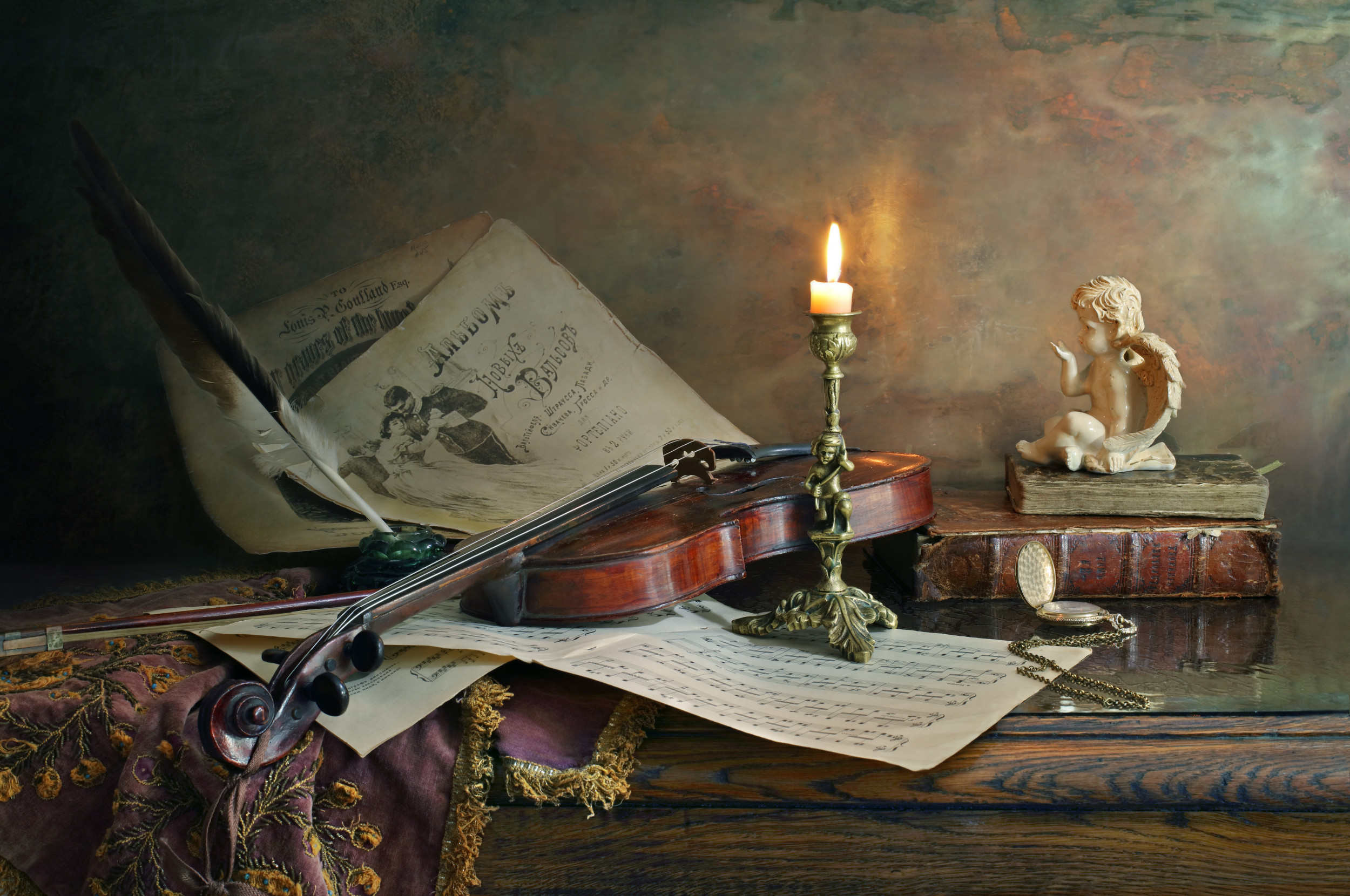'Still life with violin and candle' by Andrey Morozov