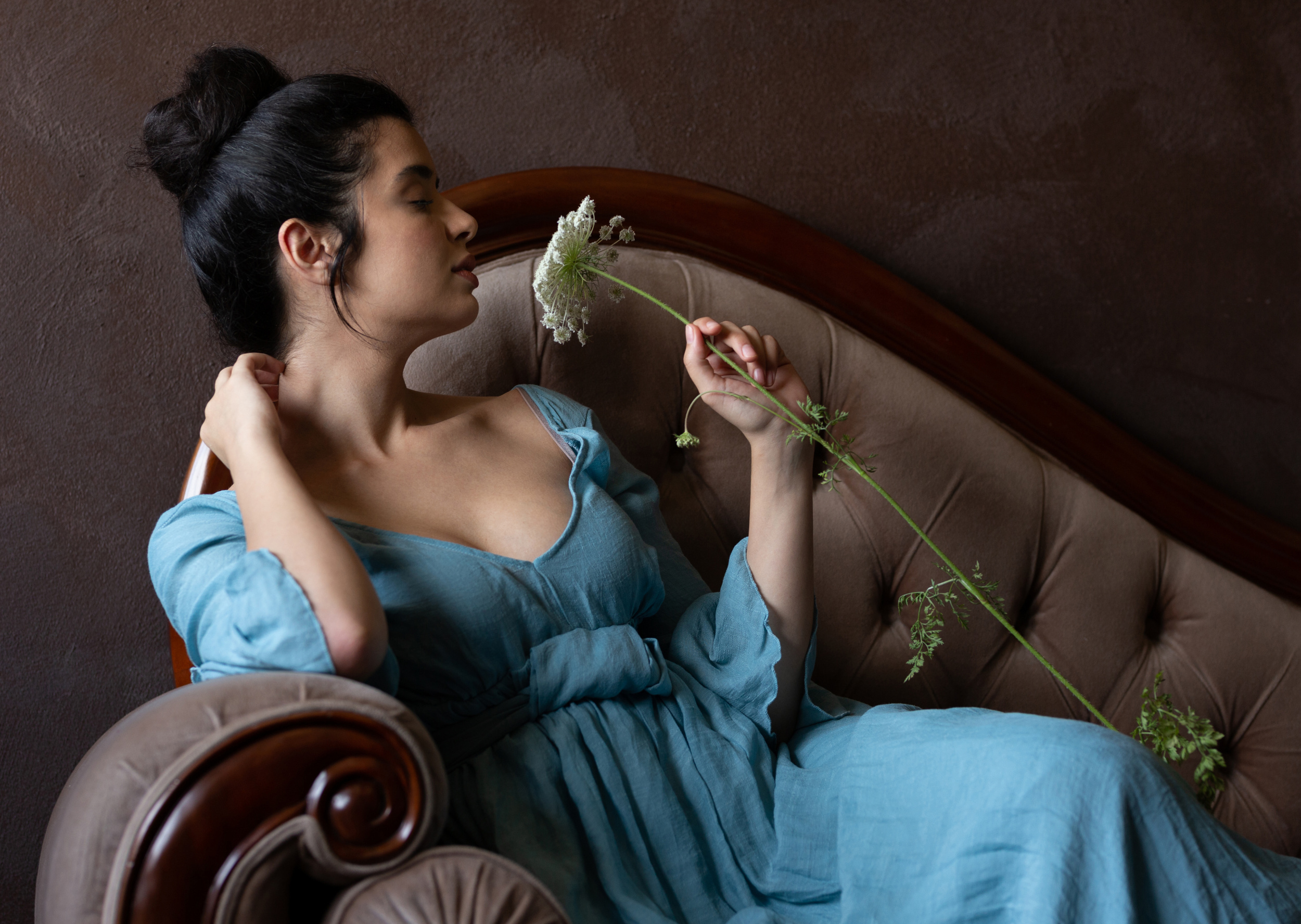 About a two years ago I found an amazing location. This place was reconstructed by a graphic designer. He made his home into a Rococo styled palace. It took him almost ten years to complete the project. Now it became a wonderful location and I find a lot of ideas when I work there. The process starts by picking the right style model and look for the place. Then I take care of the clothing, sometimes hair and make-up. After the shoot I edit the photographs. My edit workflow is very simple, I try to stay as natural as possible and go along with original colours and beauty.