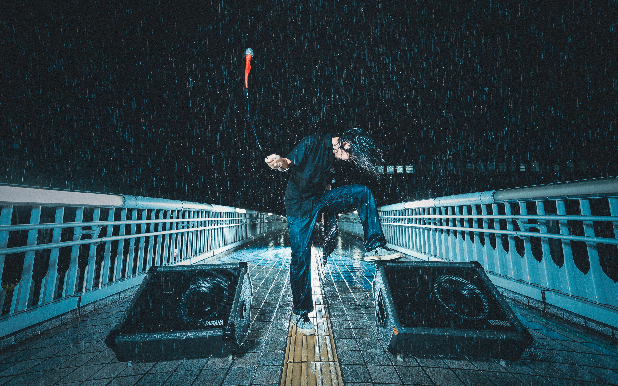 'SWING THE MICROPHONE STAND OVERHEAD'