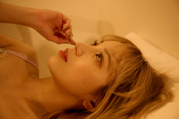 This piece was taken in April 2021. The original photo actually features a woman lying on her back.